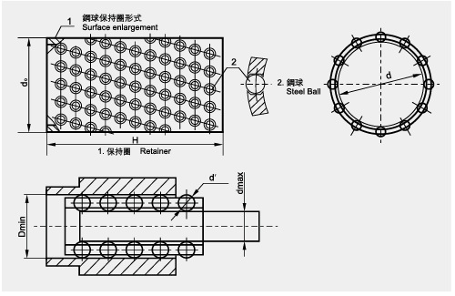 传统的具有相对运动的孔与轴是有一定间隙的,并孔与轴之间运动磨擦系数较大,使用钢球保持圈后,使轴与孔不直接接触,而是通过中间微量过盈的钢球,因而运动精度高,滚动摩擦代替动摩擦,滚动灵活,摩擦系数小,使用寿命长,在既有转动、又有移动的场合,用无油或加油的轴套与轴相配合,虽然能满足,但运动精度较低,用滚动轴承,只能满足轴相对转动的场合,而钢球保持圈,则上述二个条件均得到满足,目前已广泛应用于冷冲模滚动模架、高精度机床、机床附件以及要求高精度轴向或轴径向同时运动场合。